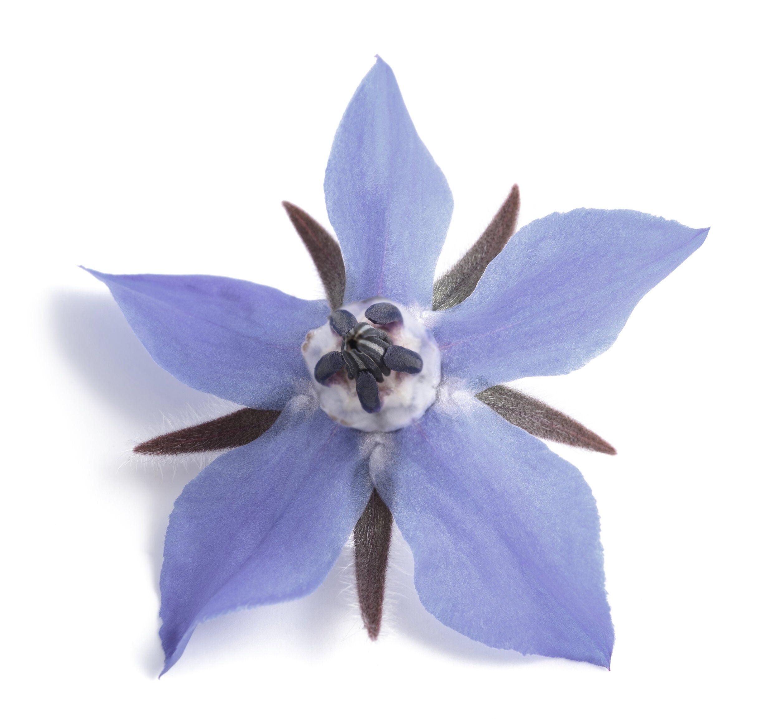Borage: /ˈbɒrɪdʒ/ (noun) - An exquisite Mediterranean plant characterized by its star-shaped blue flowers, serving as a timeless emblem of courage.